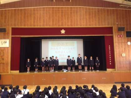 平成30年度、前期の児童会開きを行いました。前期の運営委員、各委員会の委員長の自己紹介を行いました。一人一人が九条南小学校のために頑張るぞという気持ちを力強く発表する姿があり、頼もしさが感じられました。