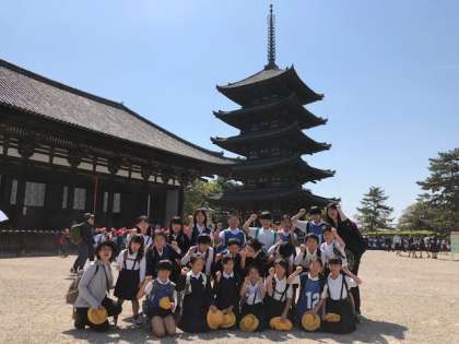 雲一つない晴天の中、奈良のいにしえの文化を全身で感じながら、元気に活動をしています。