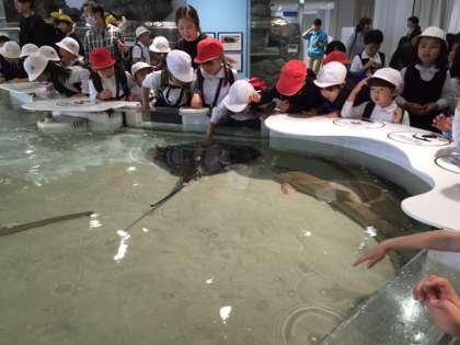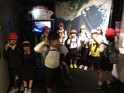 2年生のお兄ちゃん・お姉ちゃんがリードして、1年生と手をつないで見学しています。