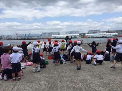 少し時間があったので、海風にあたりながら運動会のダンスの練習をしています。みんな元気いっぱい踊っています。