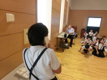その次に、実際の訓練の様子を見たり、司令室を見学しました。事前学習で質問を考えていったことで、子どもたちも自信をもって質問したり、その場で質問を考えて積極的に聞いたりする姿が見られました。