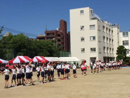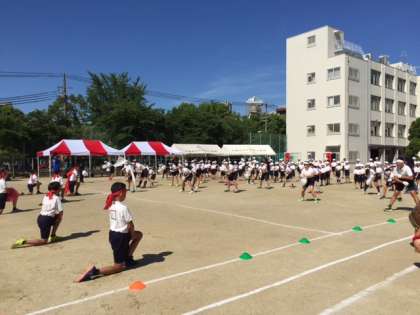 雲一つない晴天のもと、運動会の全体練習を実施しました。