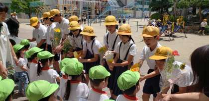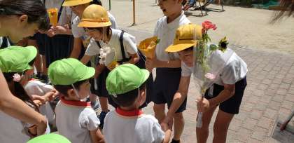 福音幼稚園の子どもたちがお花を届けてくれました