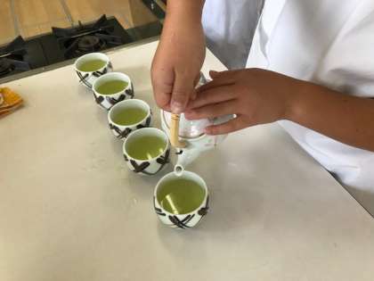 効率的な火の大きさを考えてお湯を沸かし、急須を使って淹れたお茶を飲むと…にっこり!