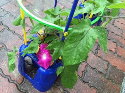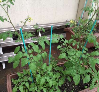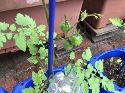 2年生のミニトマトも黄色い花と緑の実をいくつもつけていました。この雨に力をもらい、どんどん成長するのでしょうね。子どもたちも楽しみにしています。
