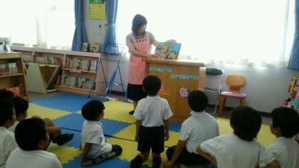 今日はどんなお話かなと嬉しそうな表情で、絵本の内容に聞き入っていました。