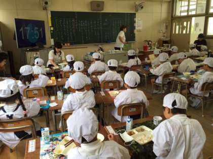 入学して3カ月、すっかり学校にもなれ、活発に活動している1年生。給食時間になると「お腹減った」「給食楽しみ。」などの言葉が自然に出てきます。