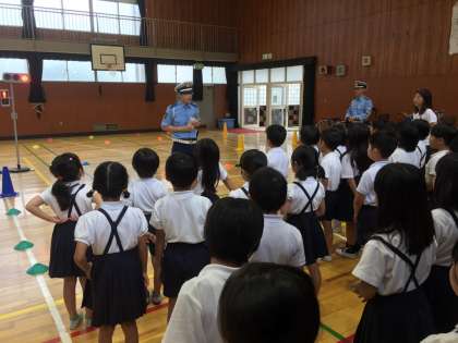 今日は西警察と西区役所の協力を得て、交通安全学習を行いました。