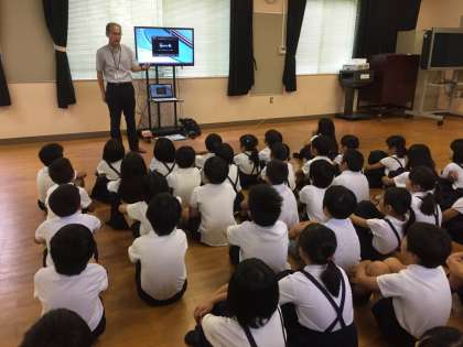 多目的室では、交通安全クイズに答えながらたのしくDVDを見ました。