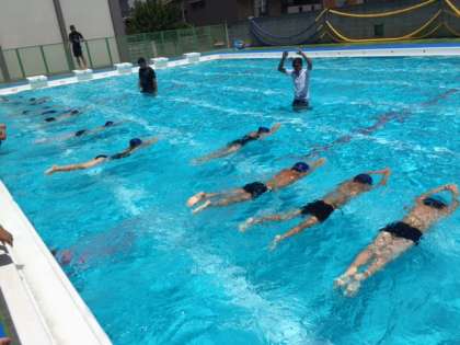 中学年は、基礎コースを中心に2回指導していただきましたが、すいすい泳げるコースの子どもたちも、タイムが速くなるコツを教わりたいとの希望が多く、今日はより速く泳ぐためのポイントを指導していただきました。