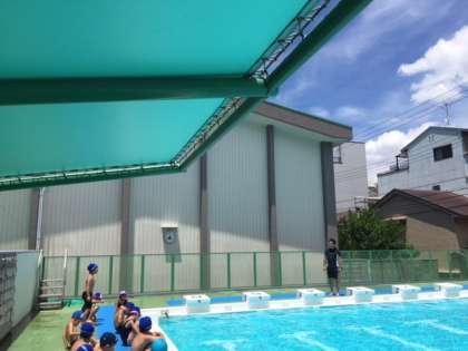 高学年の平泳ぎの指導では、「たった3回の指導の間に子どもたちの伸びが素晴らしい。一所懸命話を聞いて、体現しようと意欲的にがんばってくれるので、教えがいがあります。」とインストラクターから褒めていただきました。
