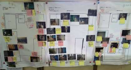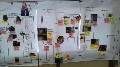 4年生では、総合的な学習の時間に「安全マップ」を作りました。「入りやすくて 見えにくい」をキーワードに校内を調査して、危険だと思うところを写真にとりマップにしました。2学期は校区内に調査に出る予定です。