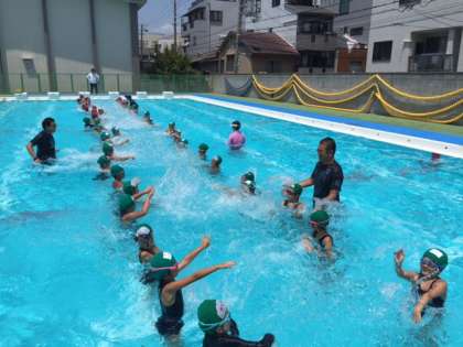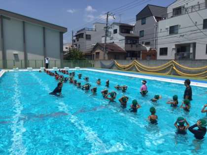 午前中に実施している水泳指導では、水筒をプールサイドに置き定期的に水分補給を行っています。子どもたちには、水筒を必ず持って来るように声かけをしています。ご家庭でも水筒を忘れていないか声かけお願いします。