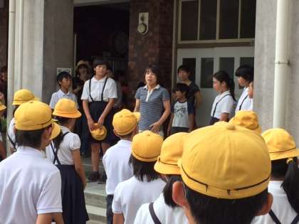 PTA役員を代表し、書記の梶本さんからは、「子どもたちがいなくて寂しいですが、友だちと協力し、色々なことに挑戦することできっと成長した姿で帰ってくることと期待しています。付き添っていただく先生方、お世話をおかけしますが、よろしくお願いいたします。皆さん大阪にはない自然を楽しんできてください。」とていねいなご挨拶をいただきました。