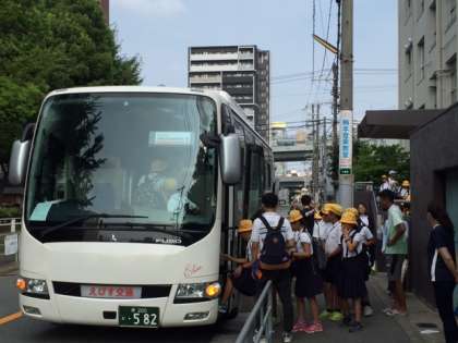 5年生は、46名全員参加で、「行ってきます!!」と保護者の皆さんに大きく手を振り元気いっぱい出発して行きました!!