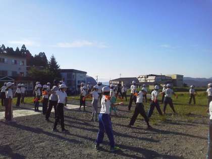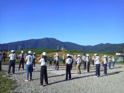 体操係の子どもたちの模範演技でハチ高原でもしっかりラジオ体操をしました。