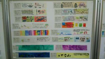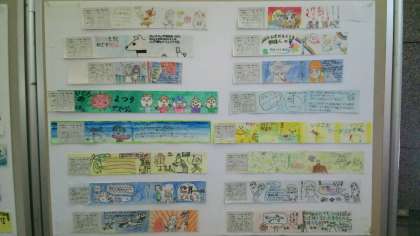 西区のコーナーでは参考展示作品として、昨年度本の帯創作コンクールに応募した九条南小学校の児童の作品が多く展示されていました。