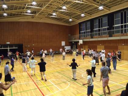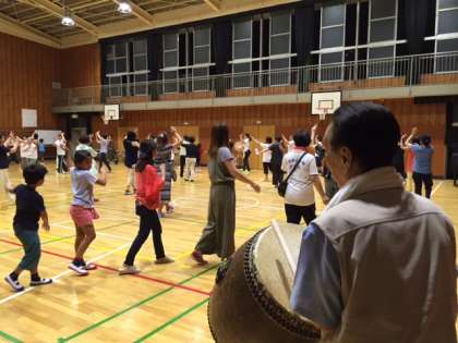 8月2日(木)19時〜 本校体育館で、「九条南連合納涼盆踊り大会」に向けての盆踊り練習会を行いました。