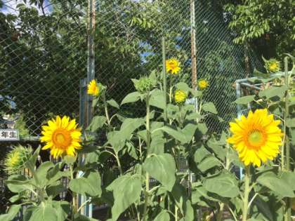 ひまわりの花も美しく咲き誇り、皆さんの登校を待っています。
