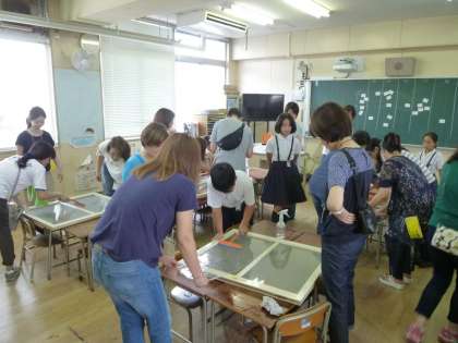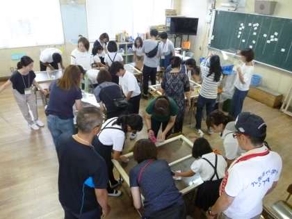 今年で「災害時飛散防止フィルム貼り」も4年目の取り組みになります。いざという時の子どもたちの安全確保のため、PTA役員・運営委員の皆様が企画・準備をし、保護者の有志が参加して実施しています。約40名の保護者が駆けつけてくださいました。