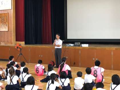 子どもたちは、真剣な表情で話を聞いていました。ご家庭でも、このような機会にぜひ、家族で防災・減災のルールづくりに取り組んでください。