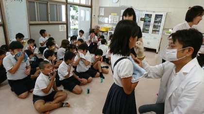 学習の後は、ていねいに歯みがきをして、保健室へ移動しフッ化物を塗布していただきました。