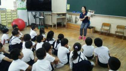 9月12日(水) 「わくわくお話プレゼント」を行いました。今月はどの先生が教室来るかな。子どもたちは、今日もワクワクドキドキ待っています。