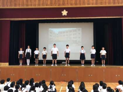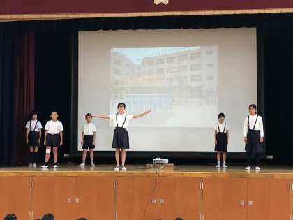最後の発表として、「遊具の使い方」について劇をしました。夏休み前から計画を立て、台本作りから委員のメンバーで考え、練習に取り組んできました。特に、遊具の周りで走り回っている様子を見て怪我につながらないために・・・と考えて、発表しました。