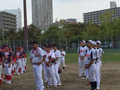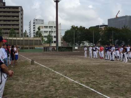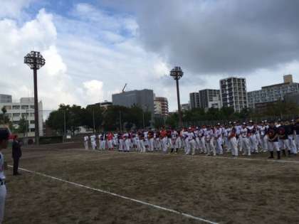 西区の幼・小・中のPTAソフトボール部の皆様が松島球場に一堂に会し、盛大に開会式が行われました。