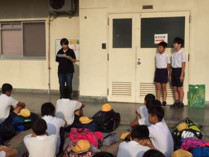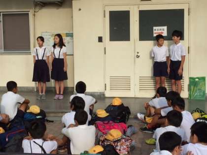 代表児童2名も笑顔で堂々と挨拶ができました。「友だちと協力してたくさんの思い出をつくって帰ってきます。おみやげ話を楽しみにしていてください。」保護者の皆様も2日間寂しい思いもあるかもしれませんが、子どもたちは、きっと成長して帰校することと思います。