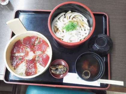 メニューは、手こね寿司と伊勢うどん、味噌汁です。