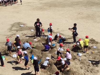 1年生は、砂場で図画工作科の「造形遊び」を行いました。
