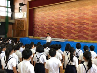 朝会では、堀尾校長先生から、「自分の身は自分で守ること」の大切さについて話を聞くことができました。日ごろからの備えや危機意識をもつ機会になったことと思います。