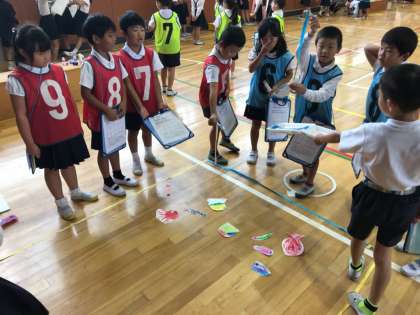 今日の1・2時間目に生活科「うごくうごくわたしのおもちゃ」を使ったおもちゃパーティーを開催しました。何時間もかけて準備を重ねたおもちゃ屋さんはどれも趣向を凝らしたものになっていました。