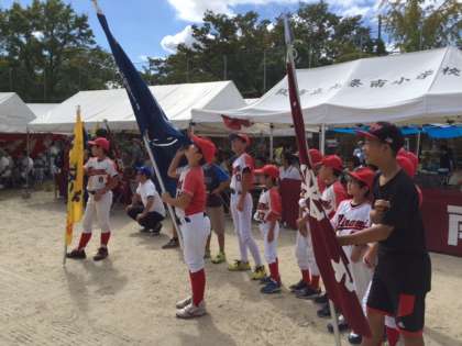 毎年盛り上がりを見せる、支部対抗可搬式ポンプ競争が行われました。野球部の子どもたちの応援もあり、九条南支部は見事勝利しました。