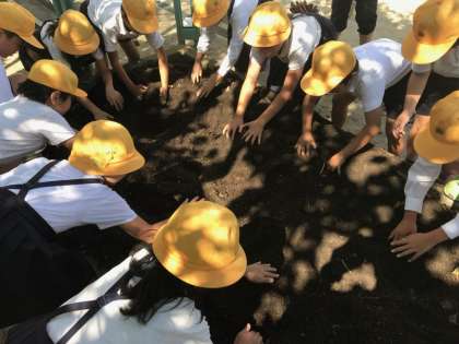 はじめは土の中に手を入れて掘るのに躊躇していた様子でしたが、土の中の栄養分をたっぷり吸った大きなサツマイモが一つまた一つと掘り出されるたびに歓声が上がるようになり、子どもたちが我先にと掘り返す様子が見られました。