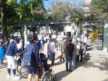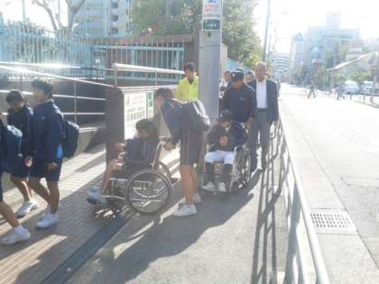 9:43からは、本校児童の避難訓練、体験訓練がスタートします。中学生にはここでも小学生の補助をお願いしています。