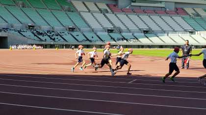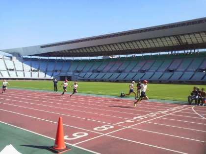 本格的な陸上競技場で走ることが初めての児童もいましたが、みんな直線の100mを全力で走り切っていました。