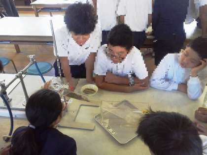ゆっくり水を流しながら観察しましたが、時々ザッとたくさん水が流れ、ゆっくりの時と違った様子も見られるなど、グループでじっくり観察していました。