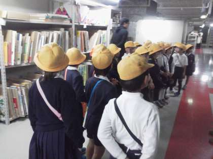 一般来館の場合は、入ることのできない地下の書庫を見学できるということで子どもたちは出発前からワクワクしていました。