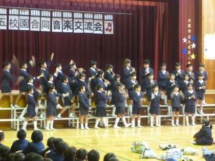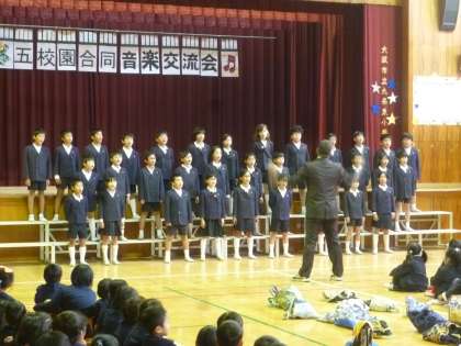 本日、九条東小学校で「五校園合同音楽交流会」が開催されました。