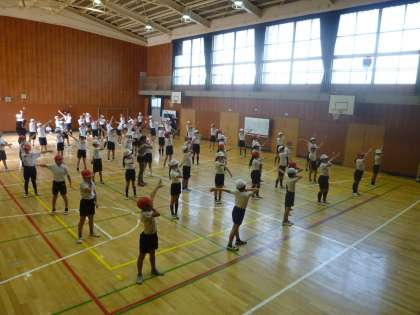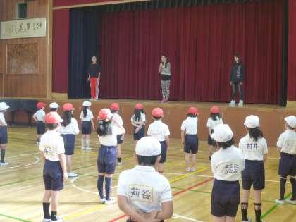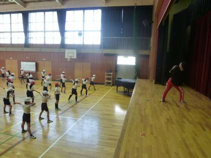 今日は「カモン ベイビー アメリカン♪」でおなじみの「USA」の振付を教わりました。1つ1つの動きをていねいにわかりやすく教えていただき、子どもたちも、すぐに振付をマスターしていました。音楽に合わせて、みんな楽しく踊っていました。