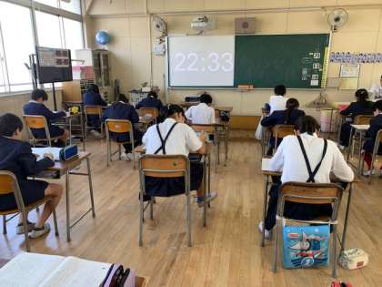 2時間目国語、3時間目社会が実施されました。どの学年、どの学級でも鉛筆を動かす音、問題用紙をめくる音だけが響き、子どもたちの真剣さが伝わってきました。