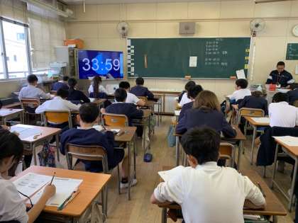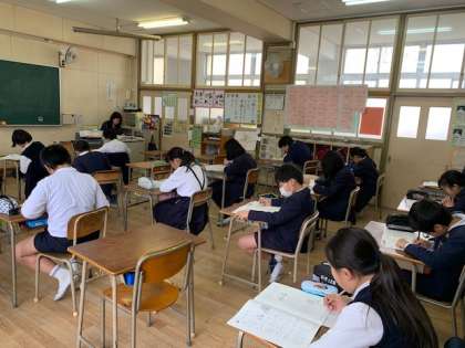 子どもたちは、計算問題を何度も見直したり、問題文に下線や丸印をつけ読み取りのミスを無くそうと工夫したり、一所懸命取り組んでいました。