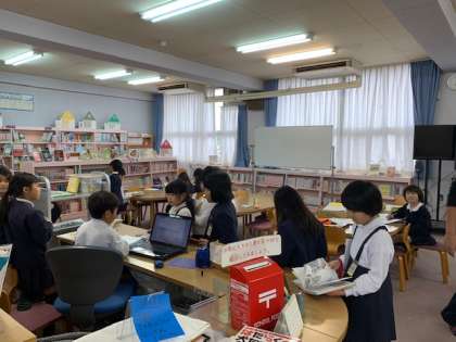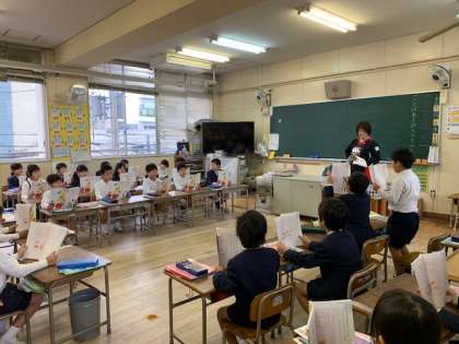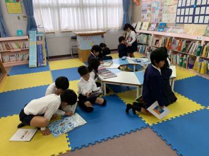 2年生は、図書室で学習していました。図画工作科で取り組む「読書感想画」の本を探している児童や読書を楽しんでいる児童、週末読書で読む本を借りている児童など、様々でしたが、先日の中央図書館見学時のように、静かに活動ができていました。