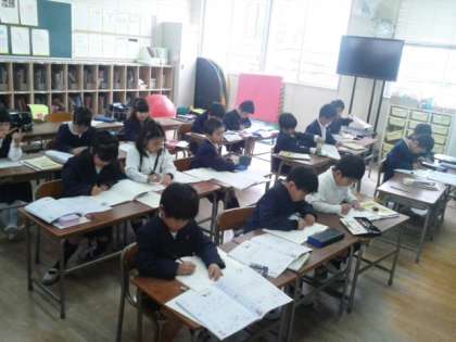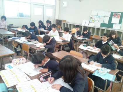 1年生はあおぞら2の教室、2・3年生は図書室、4年生以上は習熟度別学習室で行っています。1・2学期の学習の復習やまとめをして、3学期に向けて自信を深める時間になればと考えています。どの学年も、集中して真剣に取り組んでいます。