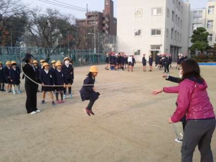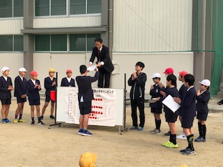 12月に入ってから2週間、各クラスごとに取り組んだ8の字大会の表彰式が行われました。部門は2つ。3分間に跳べた(くぐった)回数を競う「跳躍回数」部門。新記録を更新した回数を競う「更新回数」部門。校長先生からそれぞれの部門で金・銀・銅に輝いたクラスに表彰状が渡されました。表彰式の後は、最後の3分間チャレンジ。最後に新記録を更新するクラスもあり、それぞれのクラスで頑張りを称えあい終了しました。