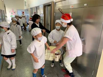 「2学期最後の給食いっぱい食べよ。」と笑顔でつぶやきながら子どもたちは教室に向かいました。