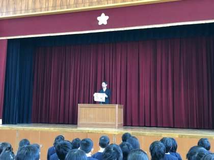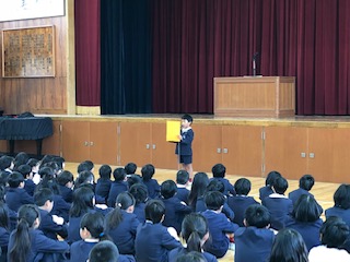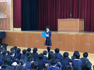 「みんながかがやき、仲間と一緒に、未来を生きぬくという言葉のようにがんばりましたね」と褒めていただき、こどもたちはにっこり笑顔になりました。また、冬休み中に「今年一年を振り返り、新しい一年のめあてを考えること」、「安全に気をつけて自分の命を大切にすること」を話されました。