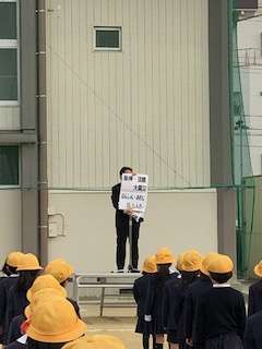 もう1つは、柳井先生から今週の生活目標について話がありました。「手洗い・うがいをする」という生活目標とともに、体調が悪い時はマスクをつけること、登校時にポケットに手を入れず、手袋をつけてくることについて話がありました。手をポケットに入れて歩くと危険がいっぱいです。ご家庭でも注意喚起の声かけをお願いします。